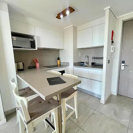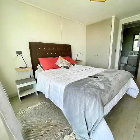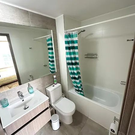 An equipped kitchenette at Renaca Encantador - Departamento Precioso Con Dos Dormitorios En Suite, Sol Y Vista Al Mar includes a toaster and an oven. The nearest airport is Vina del Mar, 5 km from the spacious Renaca Encantador - Departamento Precioso Con Dos Dormitorios En Suite, Sol Y Vista Al Mar, and Avenida Concon Renaca - Los Ginkos bus station is approximately 10 minutes' walk away.